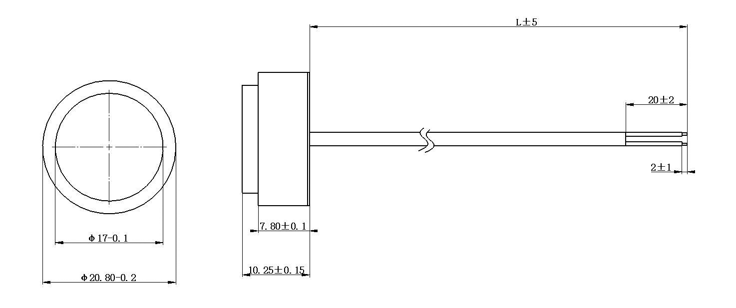 Shell material | Polymer material + stainless steel | Emitting surface size | φ17mm | Mounting surface size | φ21mm |